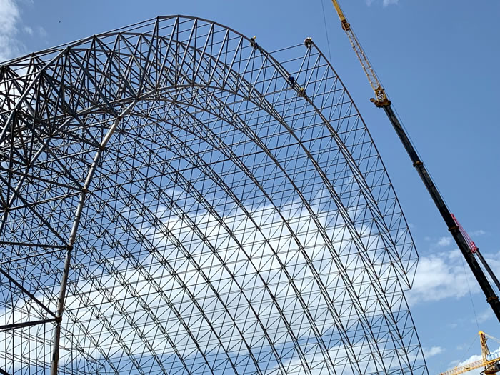 (2)网架加工前应对现场尺寸进行复测,确认无误后方可进行加工、安装;网架制作、运输、安装应遵守《空间网格结构技术规程》JGJ7-2010、《钢网架珠海螺栓球节点》JG/T 10-2009、《钢网架珠海螺栓球节点用高强度螺栓》 GB/T 16939-2016、《珠海钢结构珠海工程珠海施工规范》 GB50755-2012、《珠海钢结构珠海工程珠海施工质量验收标准》 GB50205-2020。